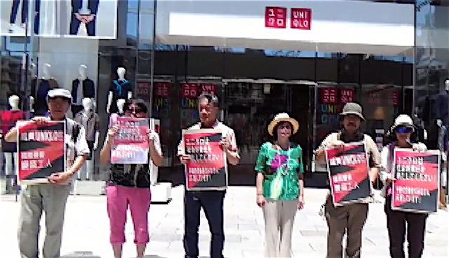 demonstration against the apparel chain at a Uniqlo store in the Ginza