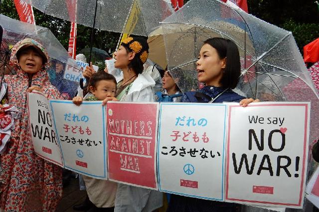 9 月17日、雨にもかかわらず午前9時から「総がかり行動」は国会正門前で「強行採決」反対の声を断続的にあげていた。午後は鴻池委員長の不信任動議の審議 があり、それが否決されたあとは、「締めくくり質疑」があるはずだった。ところが午後4時半すぎ、突然「委員会採決」の報が流れてきた。不意打ちでだまし 打ちだった。まもなく野党議員が国会前集会にきて報告した。「何がなんだかわからない」「採決もどき」「採決らしきもの」「議事録もない」と異口同音にそ のひどさを語った。それを聞く市民の表情は悔しさを滲ませていた。主催者の長尾ゆりさんがマイクを握った。「こんな採決は無効です。国民の声を封殺してご り押しする安倍政権。これほど国民主権を冒涜する行為はない。“民主主義って何だ、民主主義をあきらめない”の若者のコールが胸に響きます。安倍をいます ぐ退陣させるしかない」と呼びかけた。18日は本会議採決阻止のたたかいが続く。(M)