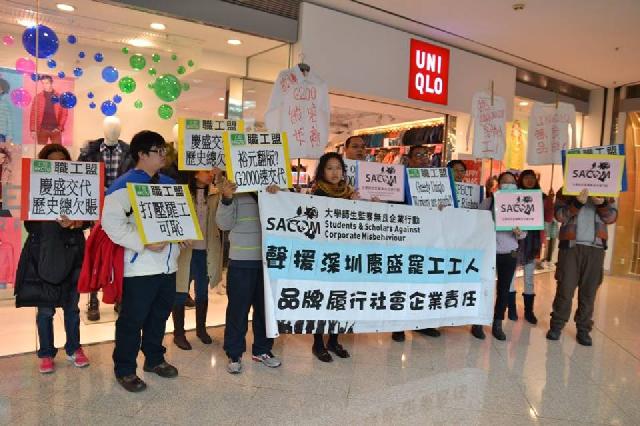 from HK labor groups went to protest at UNIQLO and G2000 shops. RCCIGU and