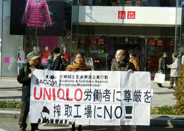 action at Uniqlo’s Ginza store on Jan. 18. “People are forced to work in a